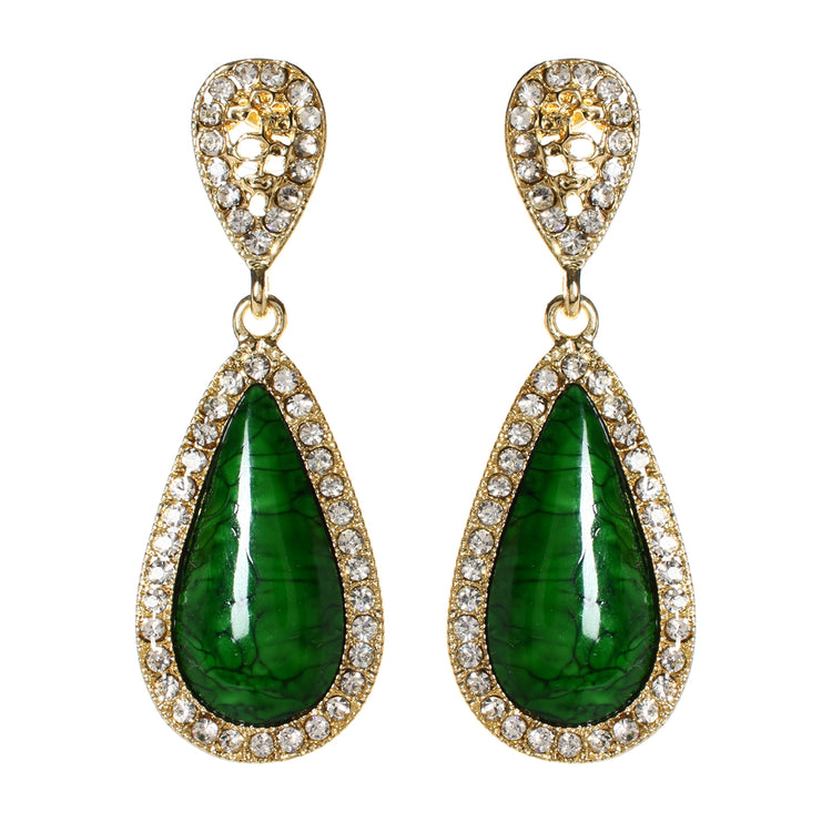 Gold-tone brass earrings with Austrian crystals and resin stones. Closure: Post. Measurements: Length 2" x Width 0.75"