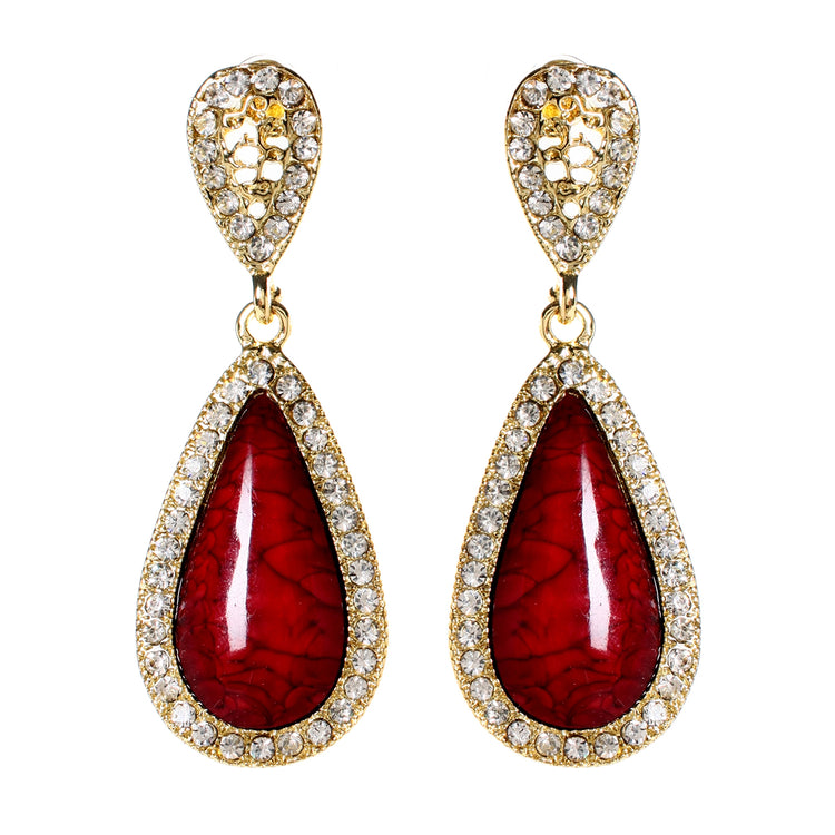 Gold-tone brass earrings with Austrian crystals and resin stones. Closure: Post. Measurements: Length 2" x Width 0.75"