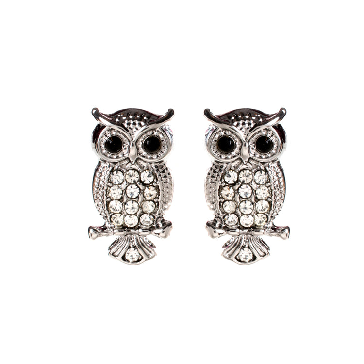 Owl stud earrings with Austrian crystals and resin stones. Measurements: Length 0.75" x Width 0.4"