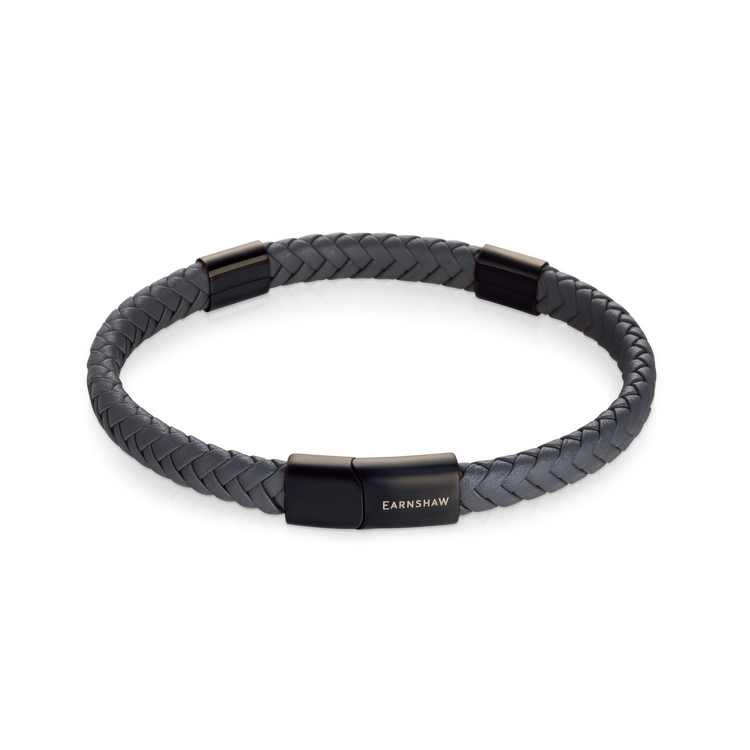 THOMAS EARNSHAW BEAUFORT LEATHER BRACELET ASHEN NOIR ES-001-B2