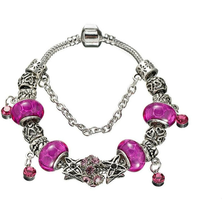 This purple themed charm bracelet has 15 charms and an impressive 33 crystals from Swarovski®. Each of the 2mm crystals adds glamour and contemporary style to you wrist.