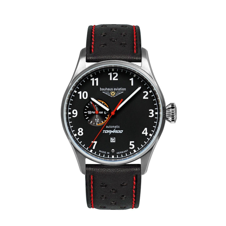 BAUHAUS AVIATION Men's Tornado Automatic 24-Hour Leather Strap Watch 27642