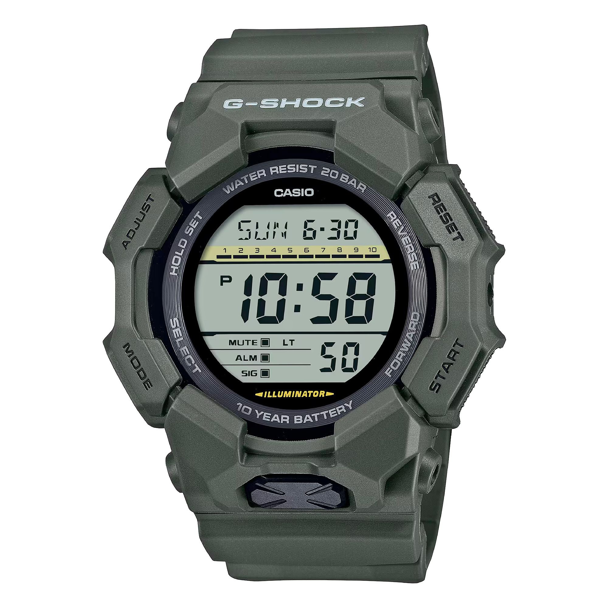 The Casio G-Shock GD-010-3ER is a men's sports watch offering a multitude of features combined with a modern design and proven durable construction.