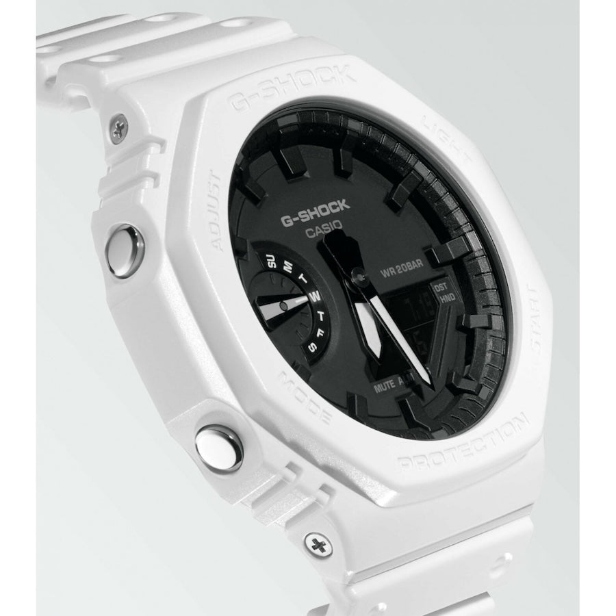 The lightweight GA-2100 is still the slimmest G-SHOCK men’s model, and features a a Carbon Core Guard structure with an interior case made of carbon fiber-reinforced resin.