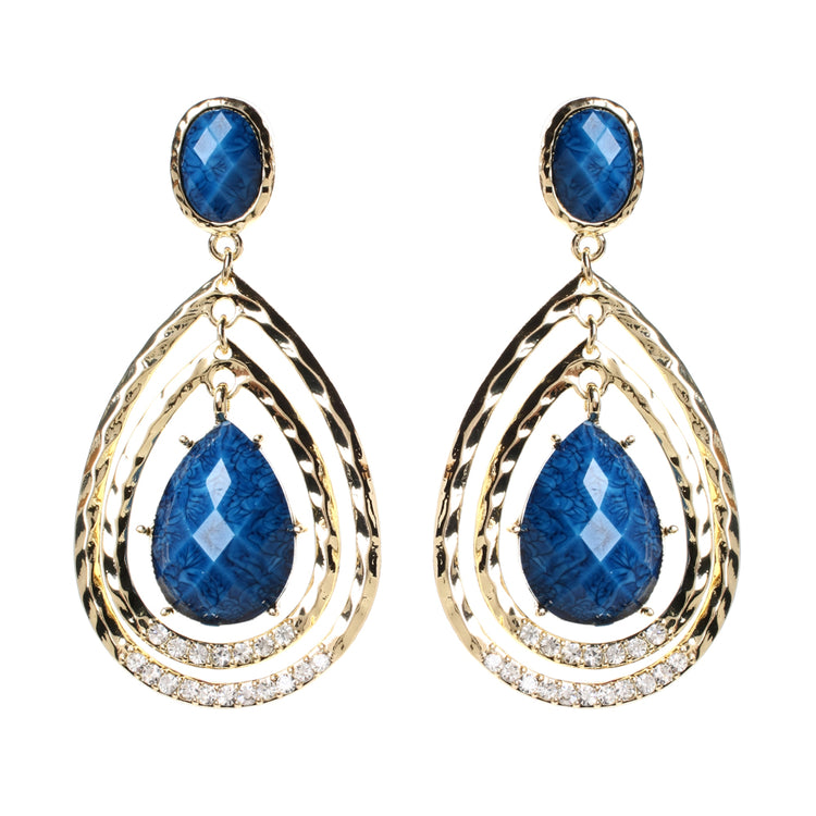 Gold-tone brass earrings with Austrian crystals and resin stones. Closure: Post. Measurements: Length 3" x Width 1.5"