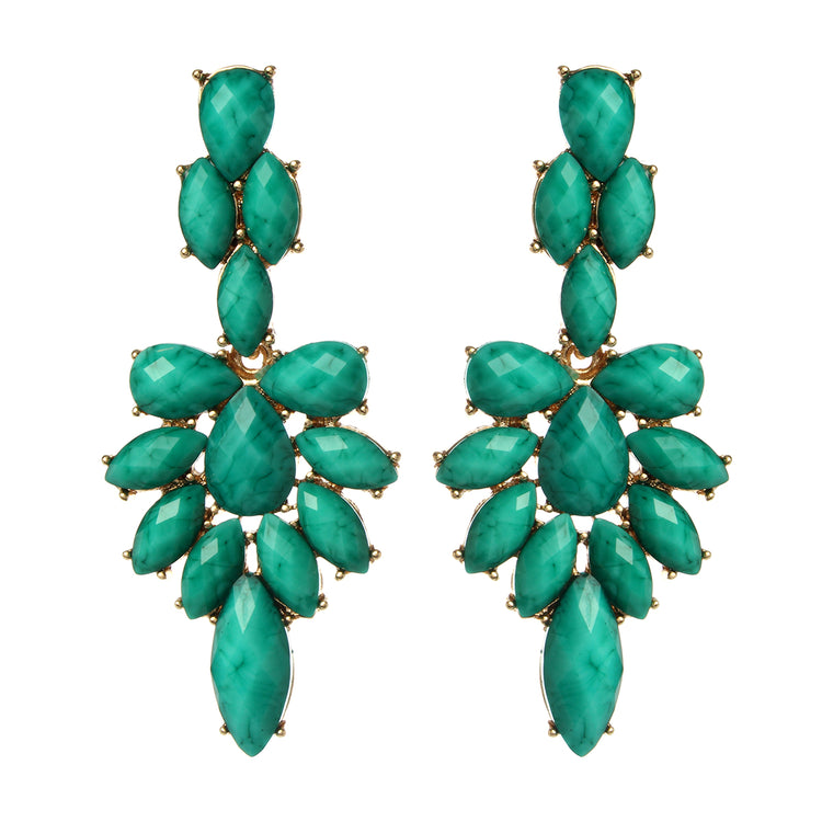 Gold-tone brass earrings with resin stones. Closure: Post. Measurements: Length 2.875" x Width 1.25"