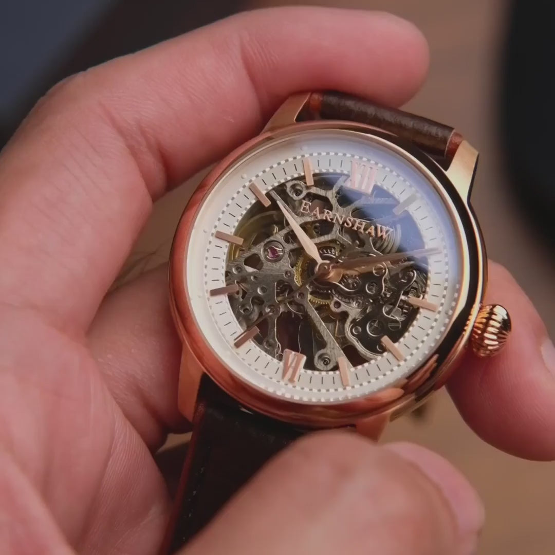 THOMAS EARNSHAW CORNWALL SKELETON AUTOMATIC Roman Rose Gold