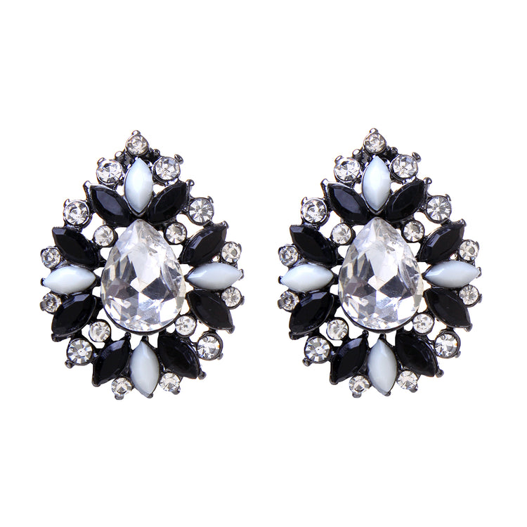 Gunmetal-tone brass studs earring with resin stones, Austrian crystals and post closure. Measurements: Length 0.75"; Width 0.5"