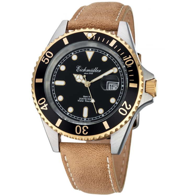 EICHMULLER since 1950 Mark III Diver Leather 20ATM Gold/Tan/Black Watch