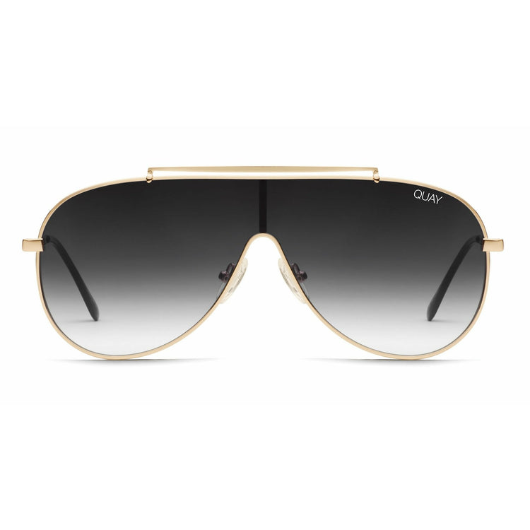 You'll be lookin' like money in this luxe aviator-inspired shield. These sunnies feature a flat fade lens enclosed in a rounded metal frame with a top metal brow bar accent.…