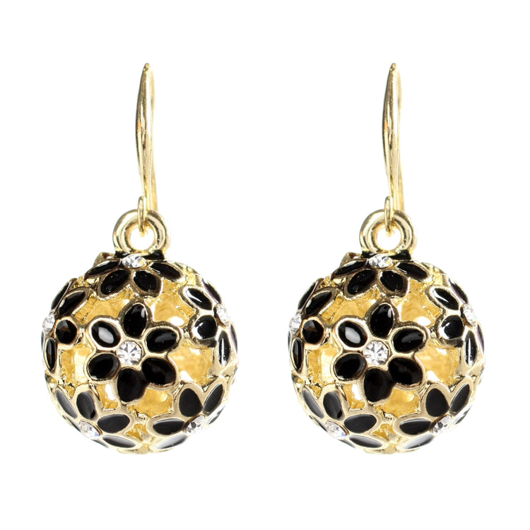 Gold-tone brass floral motif earring with enamel detail and Austrian crystals.