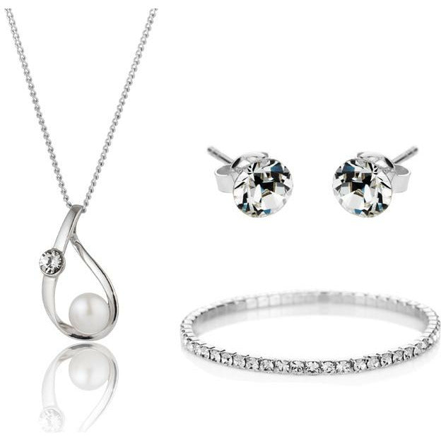 This winning combination of our enormously popular Pearl Elegance Pendant and Solo Ear Studs with a glamorous Elizabeth Bracelet makes for a fantastic trio.