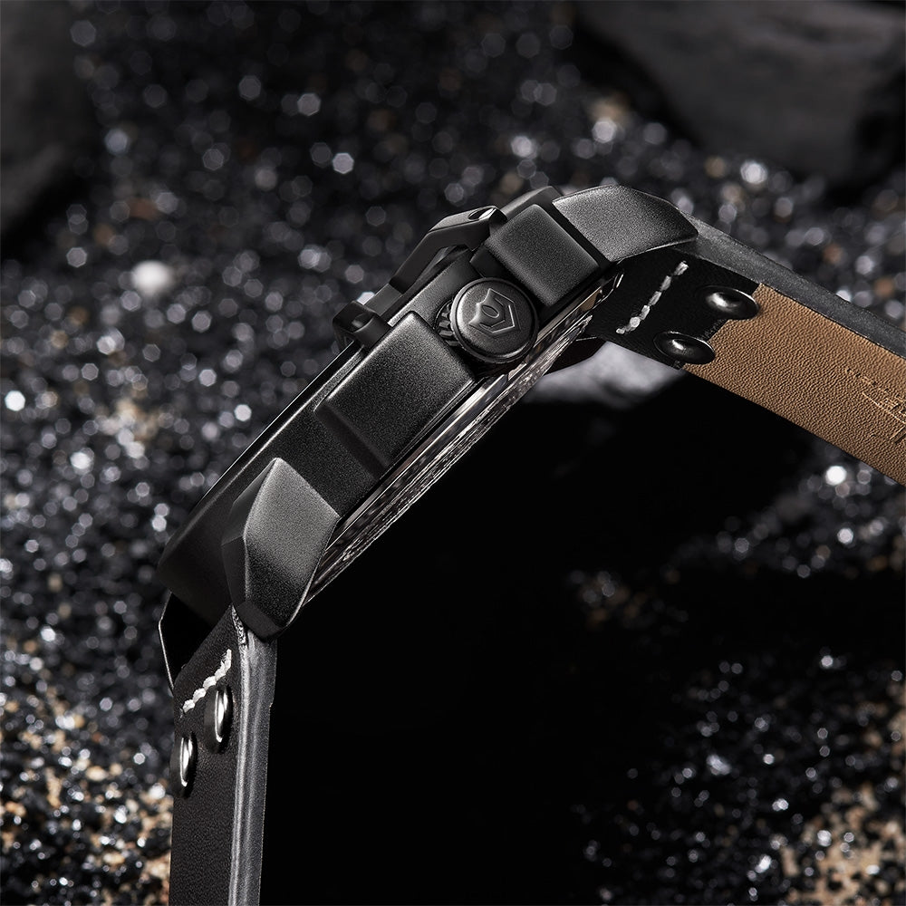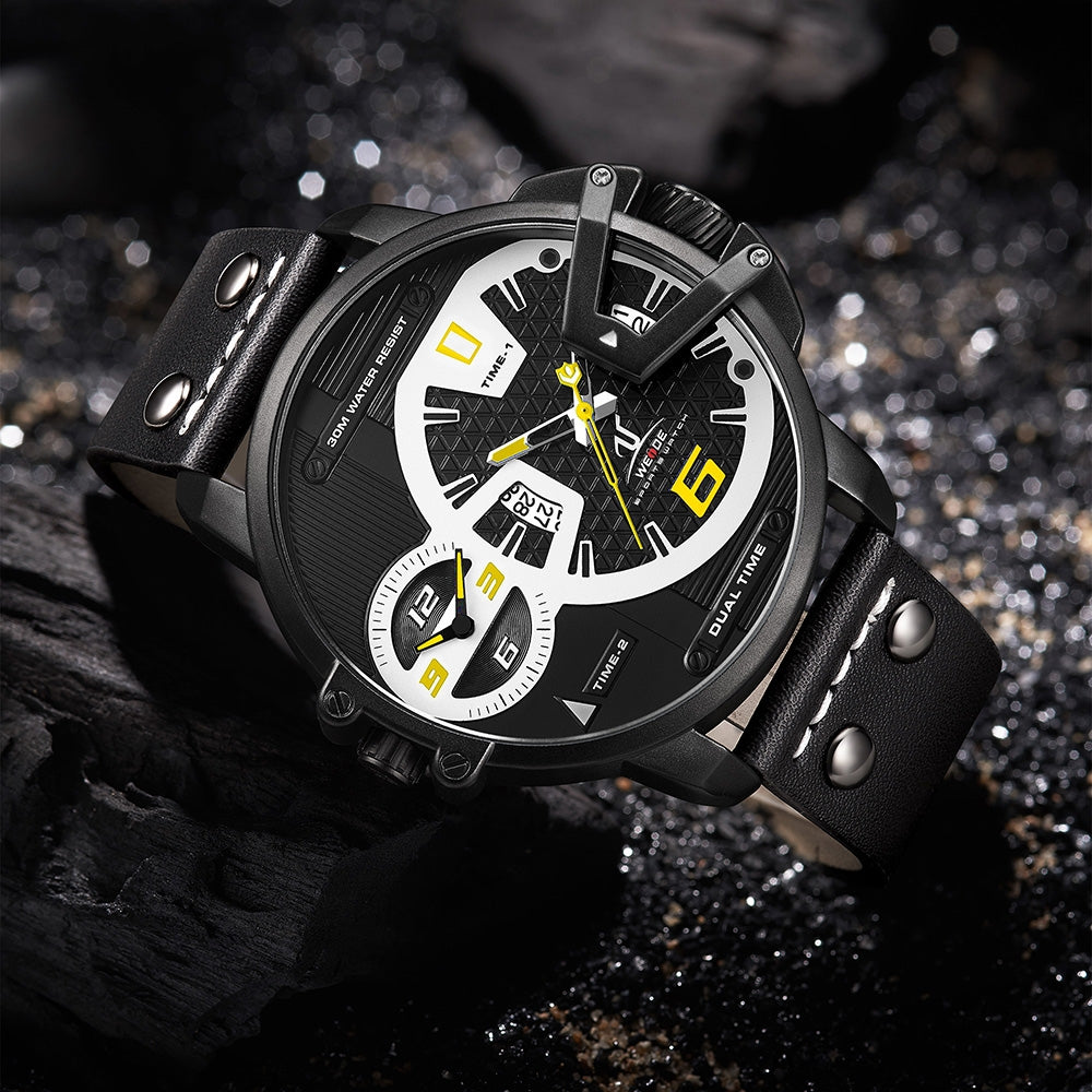 WEIDE Gigantaur 50mm Leather Black/Yellow Watch