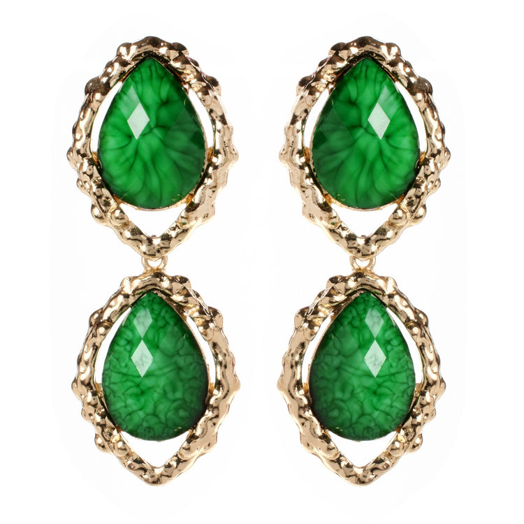 Two- tier drop earring with resin stones and gold-tone plated brass. Closure: Post. Measurements: Length 2.875"x Width 1.125"