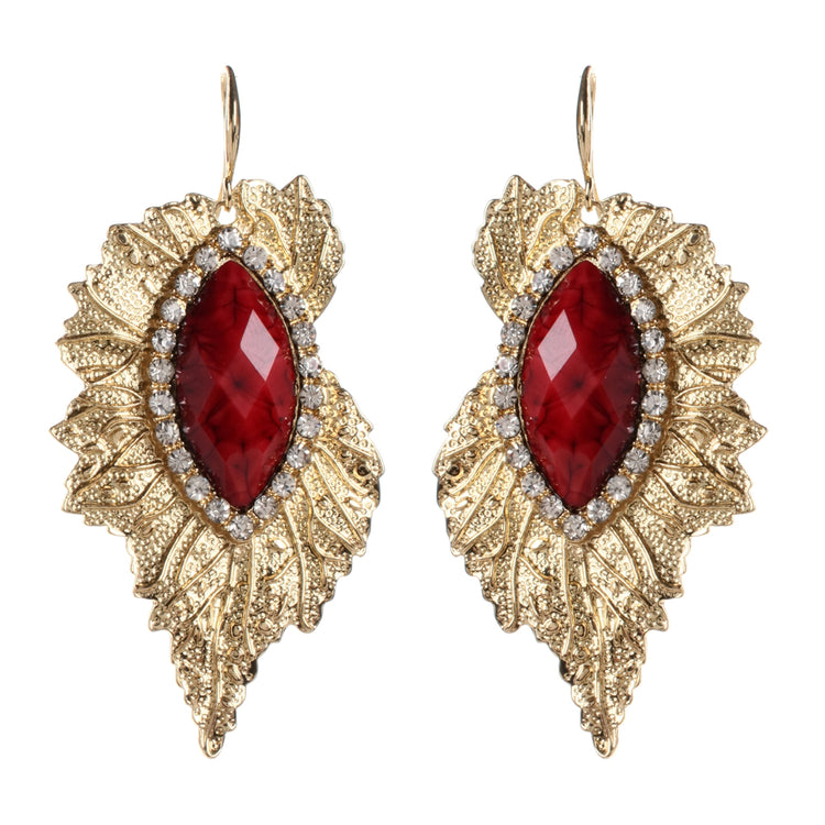 Gold-tone brass earrings with resin stones. Measurements: Length 2.25" x Width 1.25"