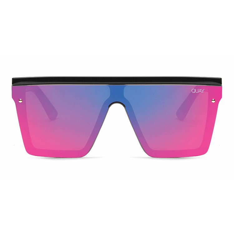 Everything’s always clearer in HINDSIGHT. These mega babe shields feature large black square lenses over a flat black shield frame with a strong plastic brow bar.