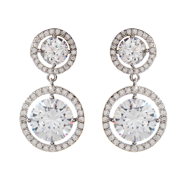 Silver tone brass earrings with Cubic Zirconia. Closure: Post. Measurements: Length: 1.25" x Width: 0.6"