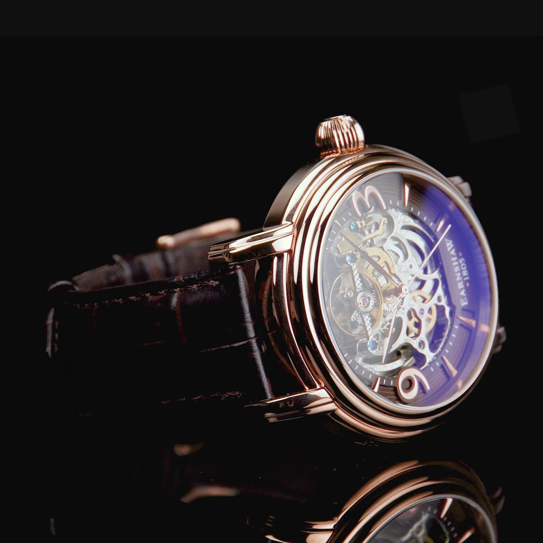 THOMAS EARNSHAW LONGCASE GRANDE SKELETON AUTOMATIC Brandy Rose Gold