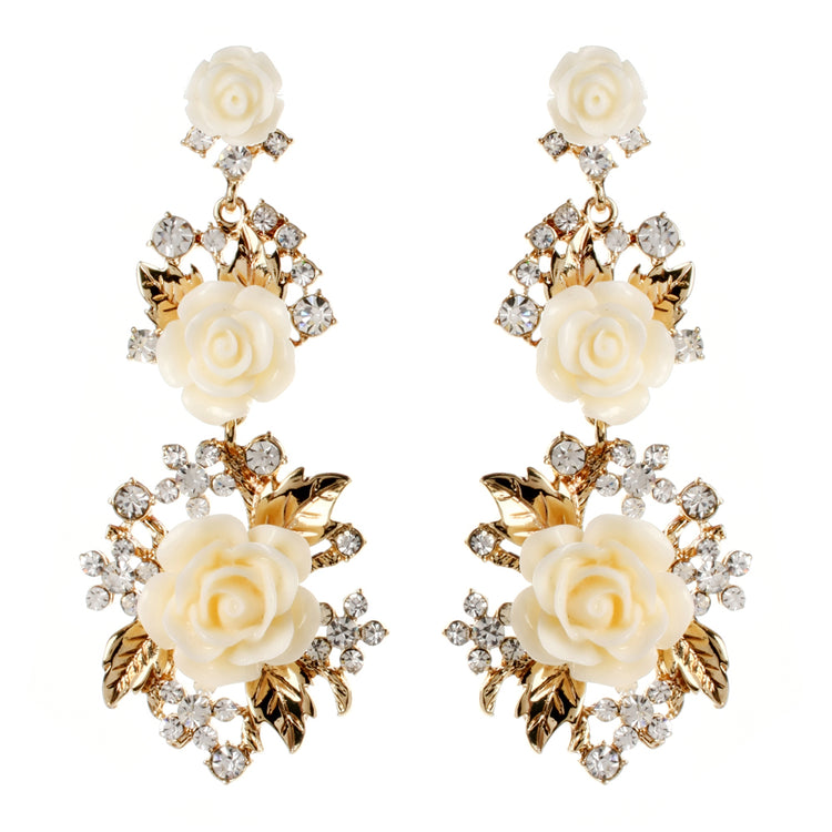Rose earrings with Austrian crystals and resin stones. Closure: Post. Measurements: Length 3.125" x Width 1.25"