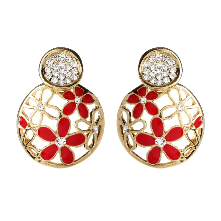 Gold-tone brass earrings with Austrian crystals. Measurements: Length 1.5" x Width 1.125"