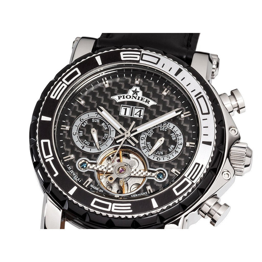 Sleek and unique, this men's Miami timepiece from Pionier is a great addition to any sportsman's collection. This watch was designed to strike, and it's super functional features will make it perfect for your everyday needs.