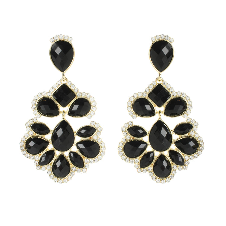 Iconic faceted earring with tear-shaped resin stones and surrounding Austrian crystals. Closure: Post. Measurements: Length 3.75" x Width 1.75"