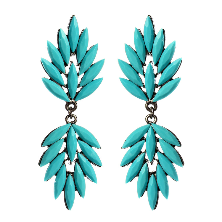 Gold-tone brass/Gunmetal brass earrings with resin stones. Closure: Post. Measurements: Length 3" x Width 1.25"