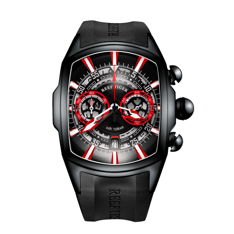 Reef Tiger Aurora Tank VK Quartz Chronograph Sport Black PVD Dial Watch