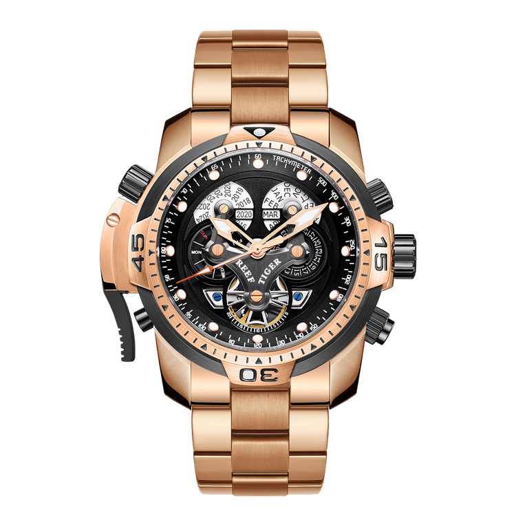 Reef Tiger Luxury Men's Aurora Concept Rose Gold Military Automatic Sport Watch