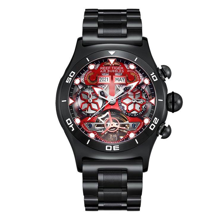 Reef Tiger Men's Aurora Air Bubbles Automatic Mechanical Skeleton Watch