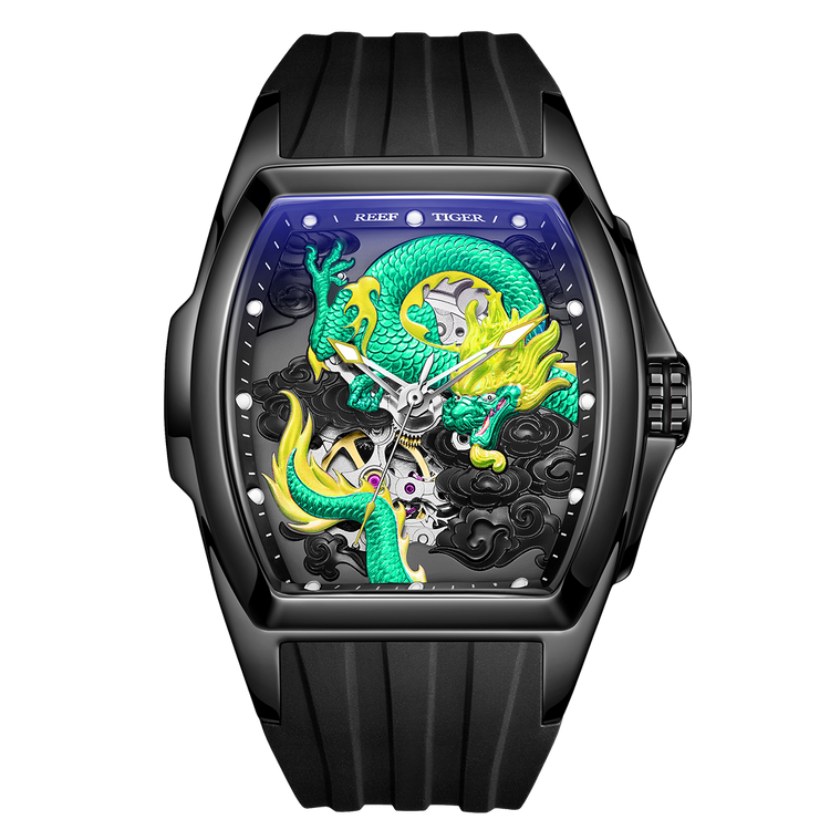 Reef Tiger Men's Aurora Chinese Dragon Skeleton Automatic Watch
