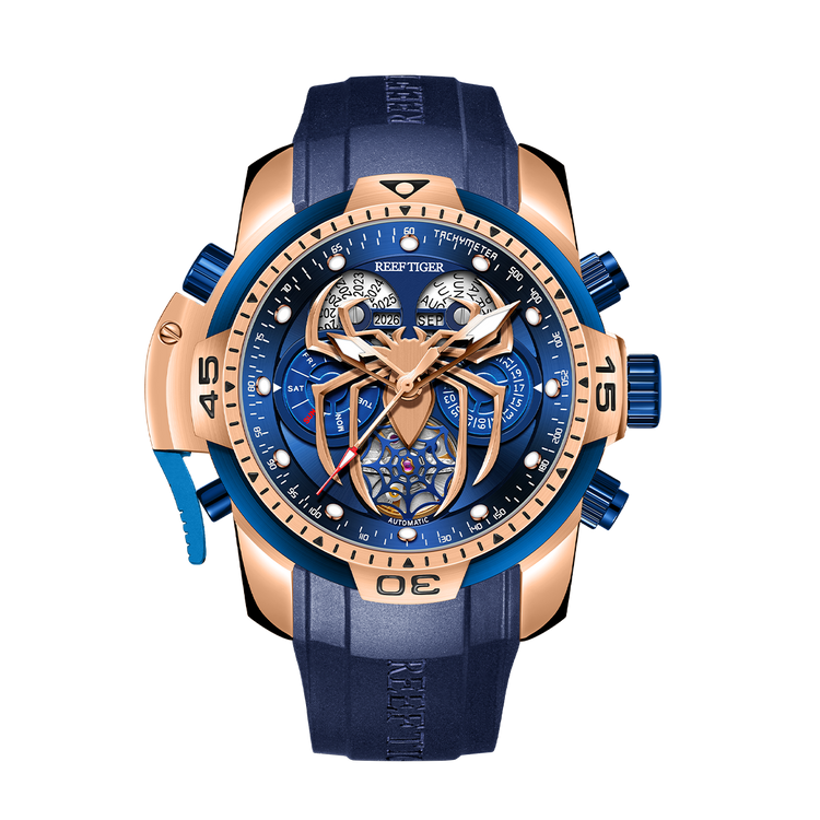 Reef Tiger Men's Aurora Spider Automatic Chronograph Watch Rose Gold/Blue