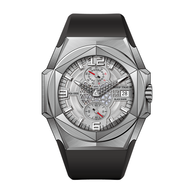 Reef Tiger Men's Black Shark Traveler Multifunctional Automatic Mechanical Dive Watch RGA6906 Silver/Black