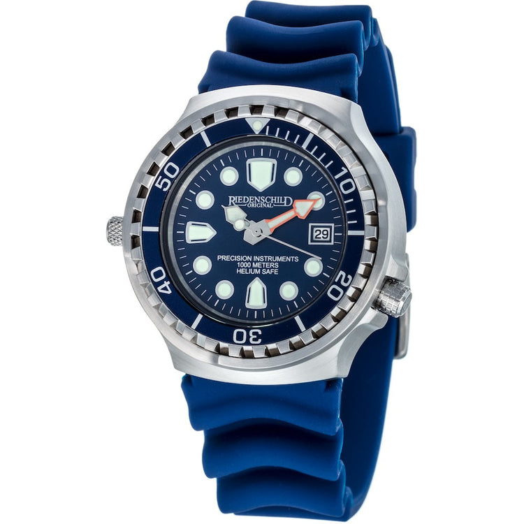 RIEDENSCHILD PRECISION INSRUMENTS GERMANY Divers Taucheruhr 1000m Helium Valve Watch Silver/Blue