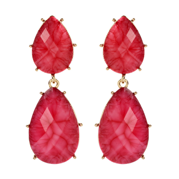 Gold-tone brass two-tiered teardrop resin stone earrings. Closure: Post. Measurements: Length 2.5" x Width 0.875"