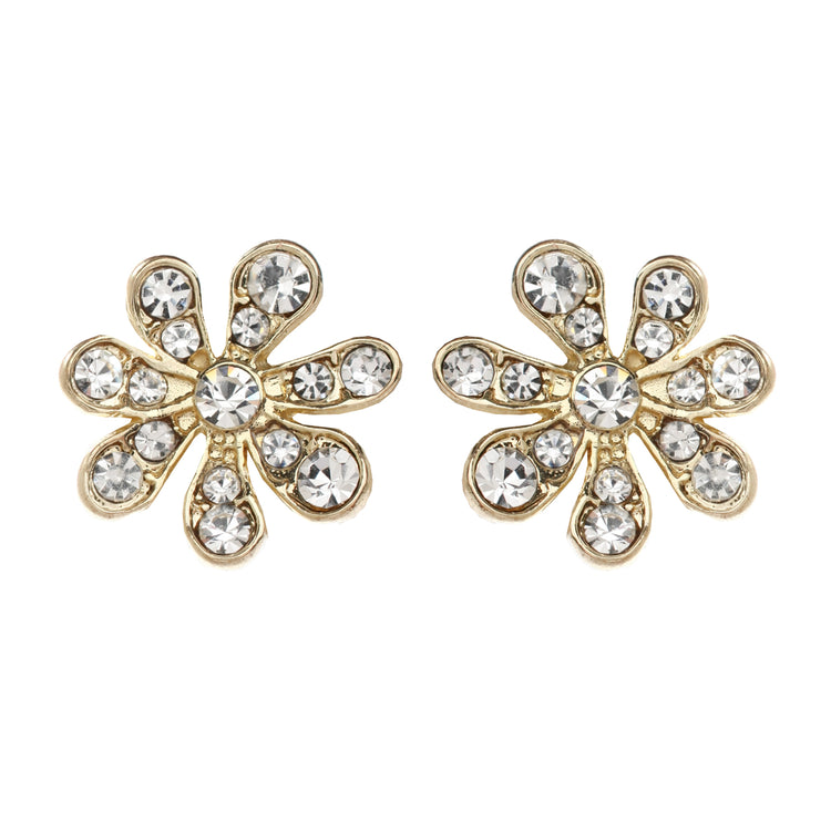 Gold-tone brass flower Earrings with Austrian Crystals. Closure: Post. Measurements: Length 0.75" x Width 0.75"