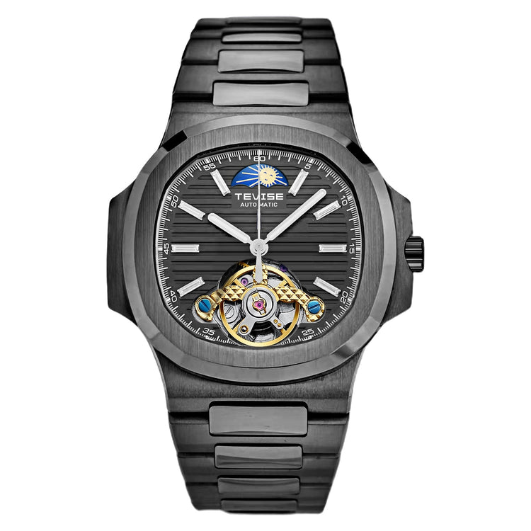 TEVISE Berlin Moonphase Open Heart Automatic Watch Black Edition