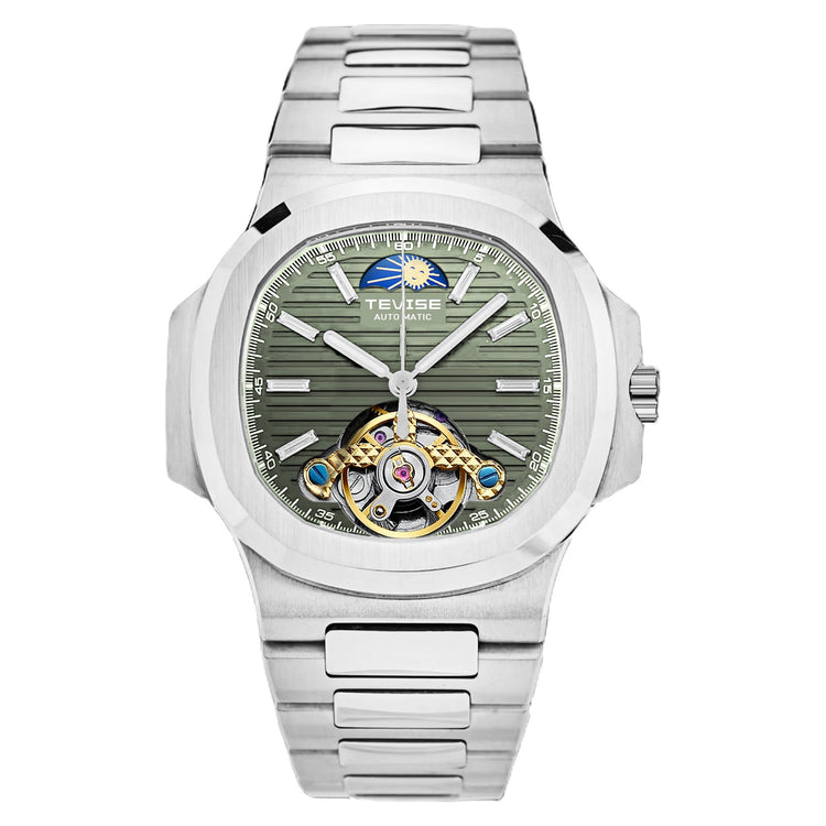 TEVISE Berlin Moonphase Open Heart Automatic Watch Silver/Green