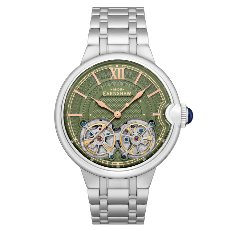 THOMAS EARNSHAW BARALLIER DUAL OPEN HEART AUTOMATIC Olive Green ES-8266-77