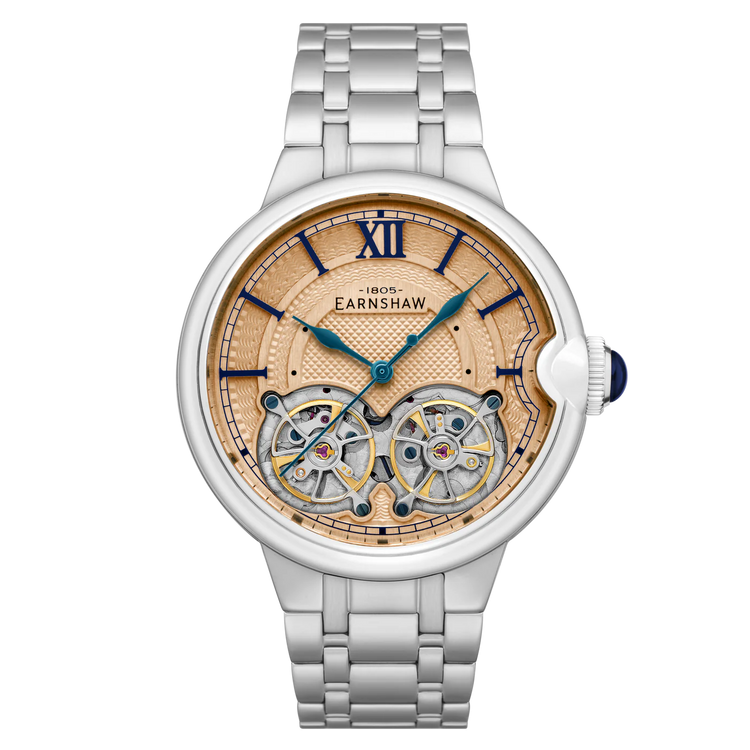 Incredibly refined. The double barrel open heart automatic display is a true piece of engineered, wearable art. Beyond the ordinary, beyond what is expected of a timepiece, this is a timepiece of incredible sophistication reflecting the talents, the tradition and timeless luxury of the Earnshaw brand.