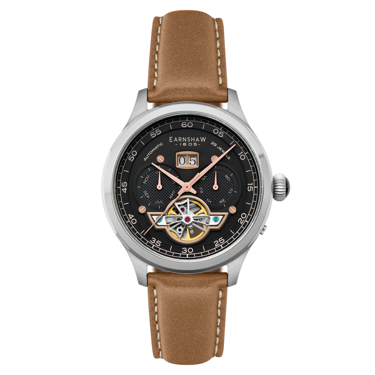 THOMAS EARNSHAW BARON GRAND DATE CALENDAR OPEN HEART AUTOMATIC Abbey Black
