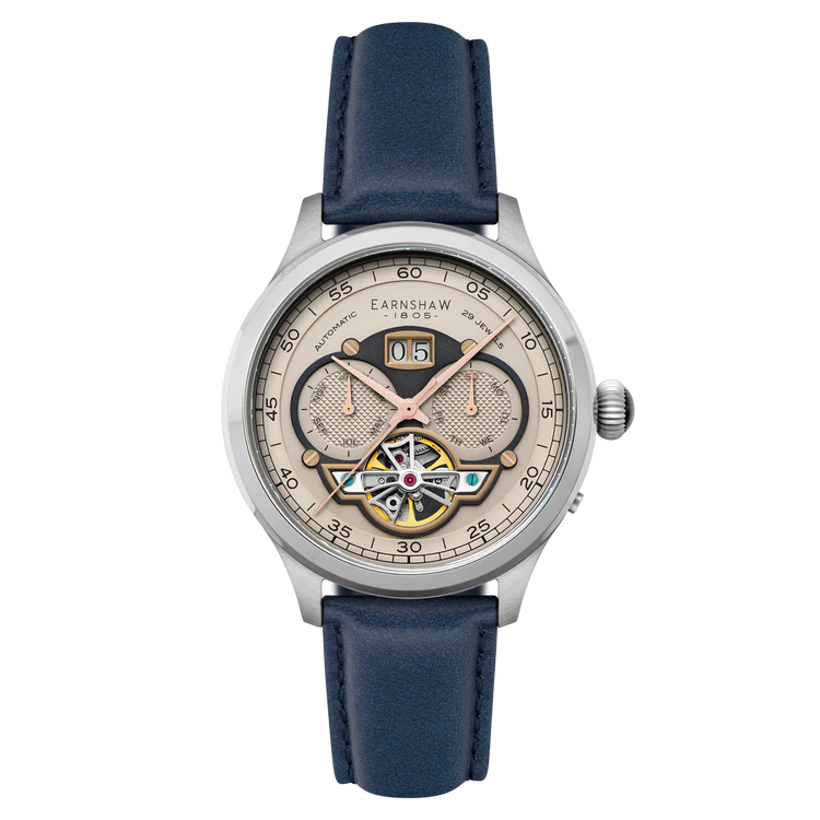 THOMAS EARNSHAW BARON GRAND DATE CALENDAR OPEN HEART AUTOMATIC Camel Blue