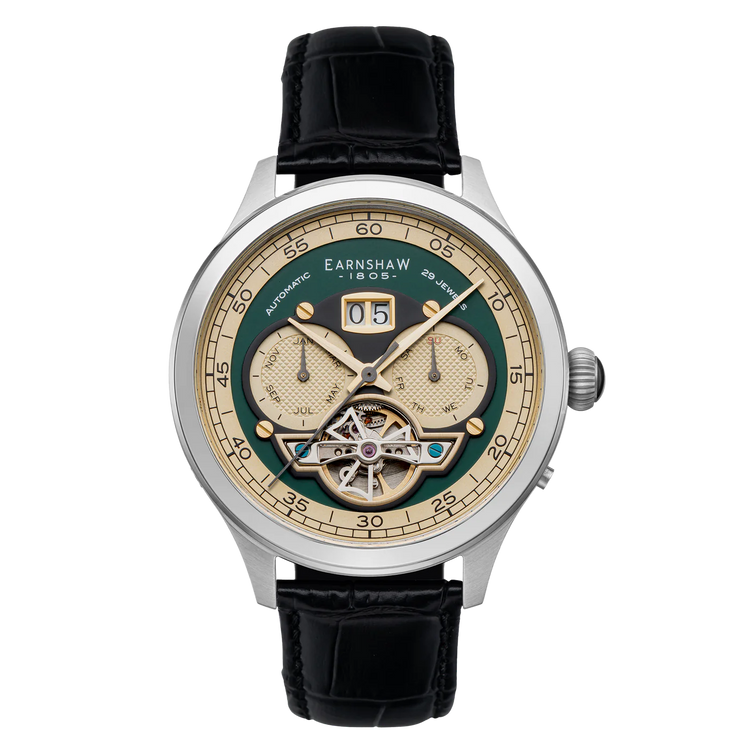 THOMAS EARNSHAW BARON GRAND DATE CALENDAR OPEN HEART AUTOMATIC Forestry Green ES-8187-03
