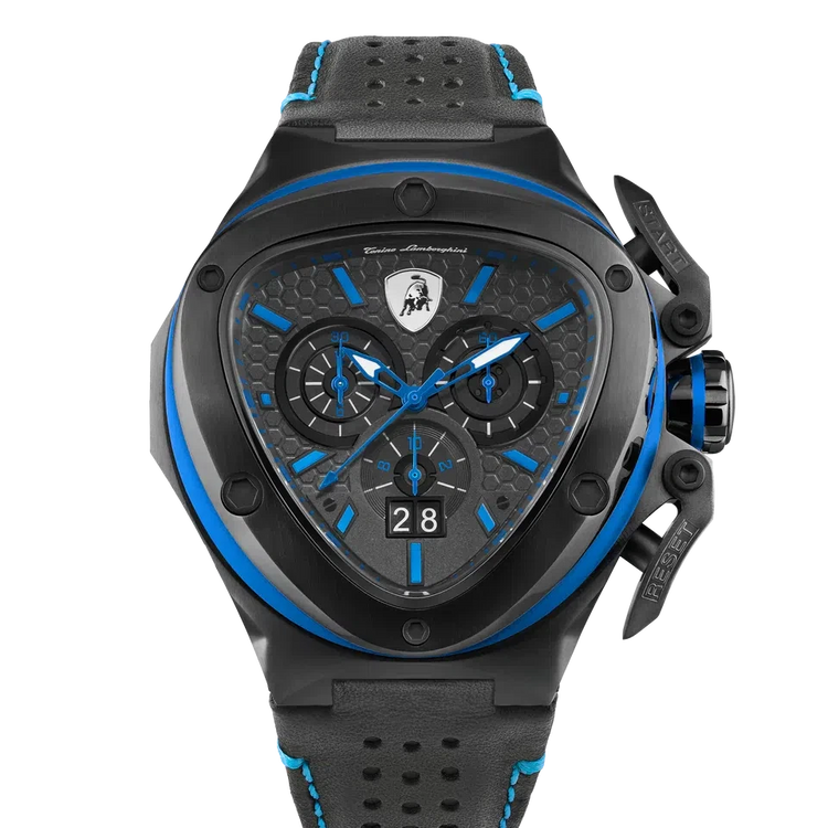 TONINO LAMBORGHINI Spyder X Leather Watch Black / Blue