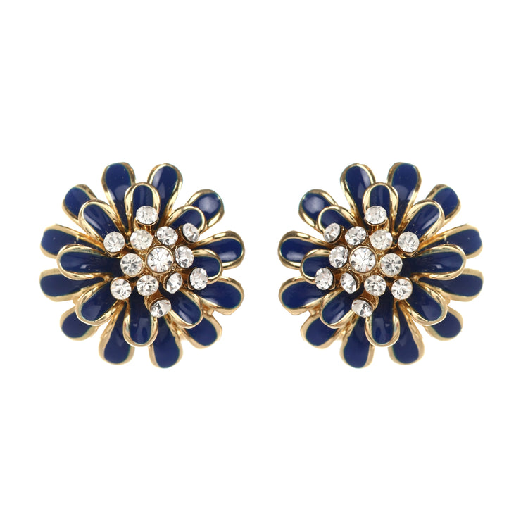 Gold-tone brass flower studs with Austrian crystals and enamel detailing. Measurements: Length 01" x Width 1"; Closure: Post