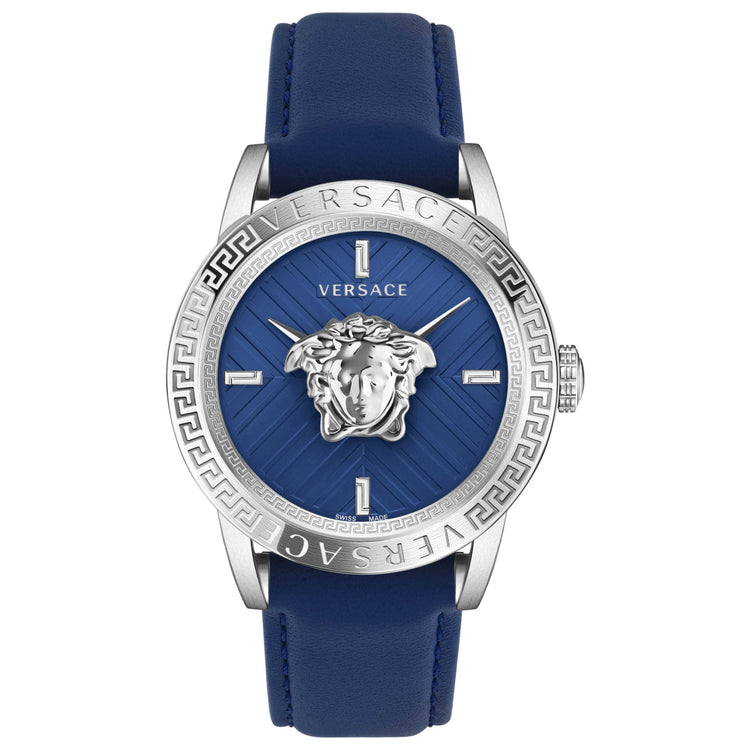 Versace Men's V-Code 43mm Blue Leather Watch