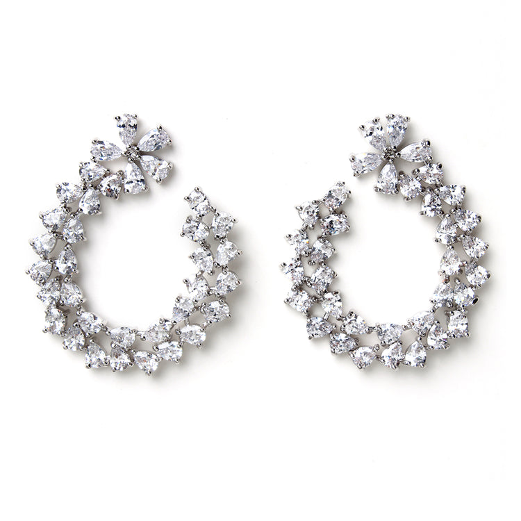 Silver tone brass earrings with Cubic Zirconia. Measurements: Length: 1.50" x Width: 1.25", Post Closure