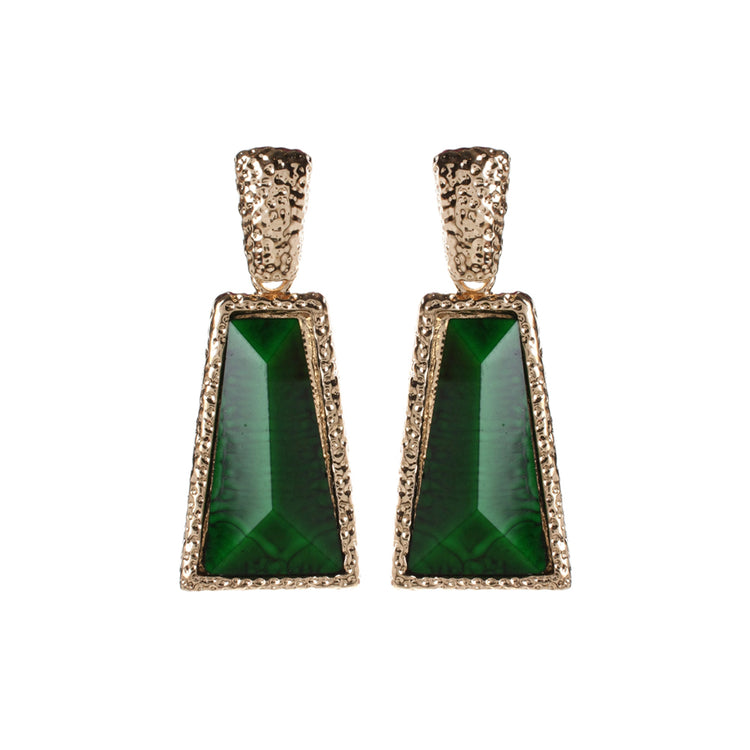Gold-tone brass earrings with resin stones and hammered finish. Closure: Post. Measurements: Length 1.75" x Width 0.75"